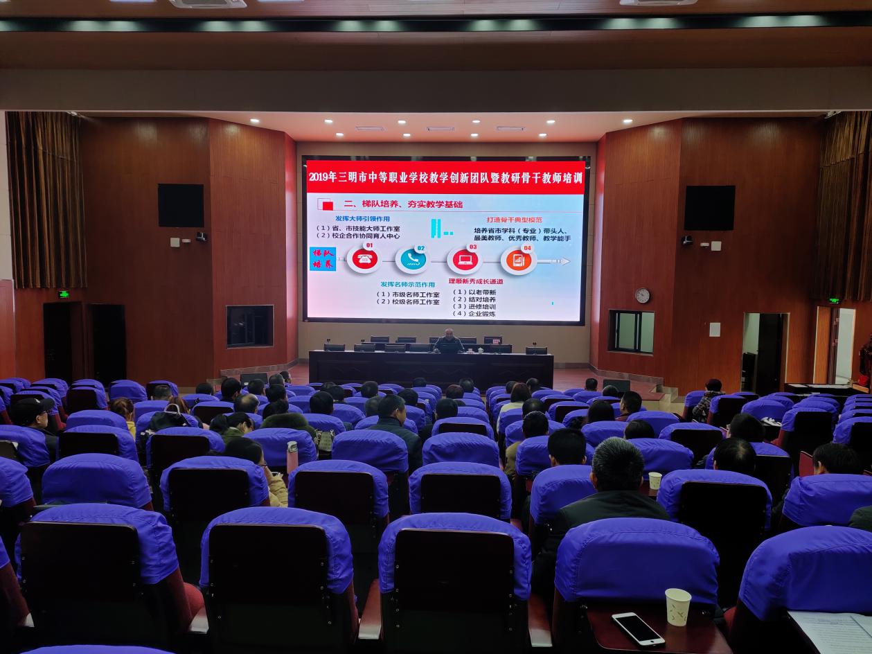 2019年12月30-31日,由三明教育学院主办的2019年三明市中等职业学校教学创新团队暨教研骨干教师培训活动在LEJING.COM(中国)有限公司报告厅举行。本次培训面向全市中职校教学分管副校长、教学教研工作负责人和主干专业建设负责人,参训人员达70余人。