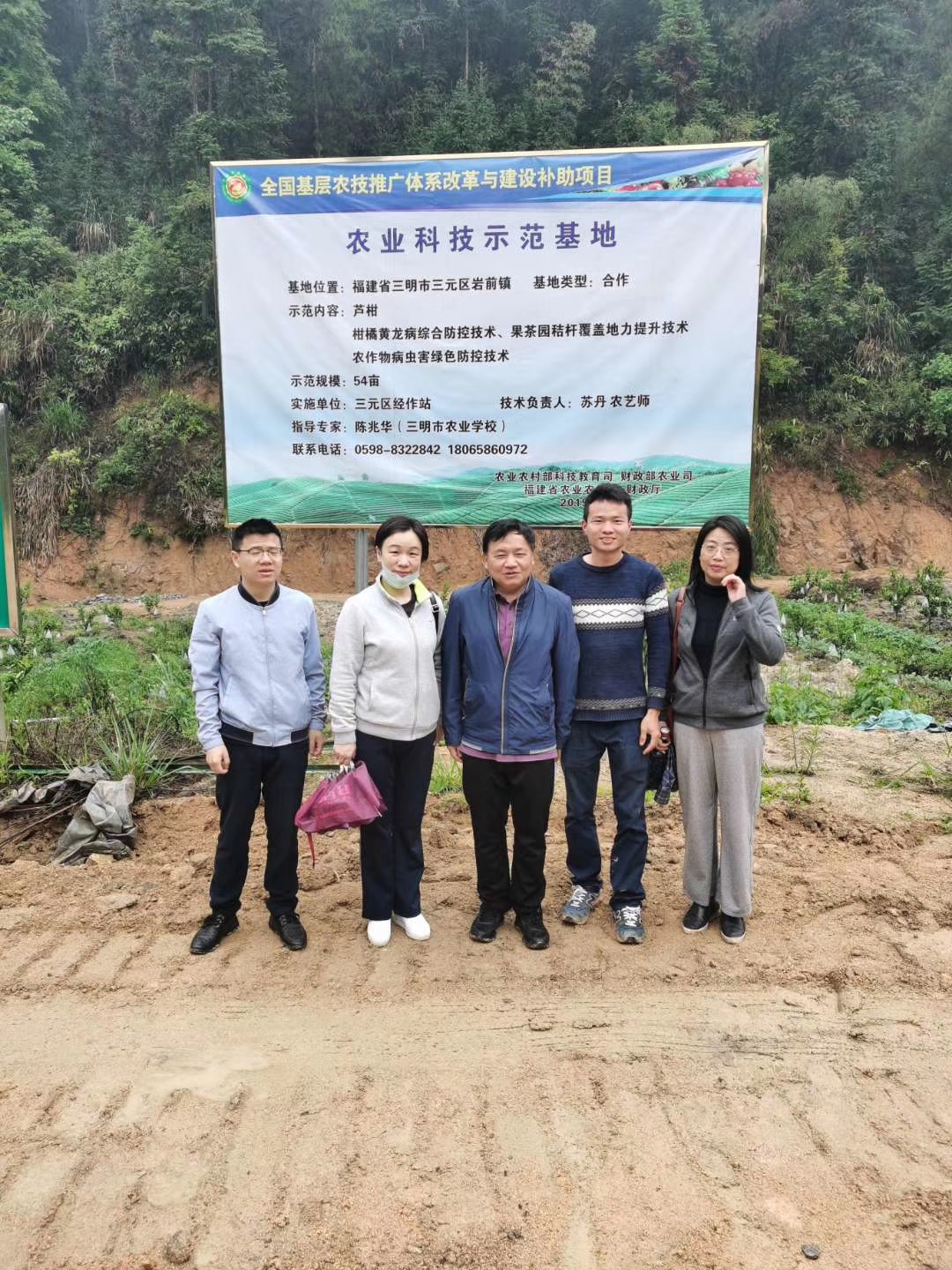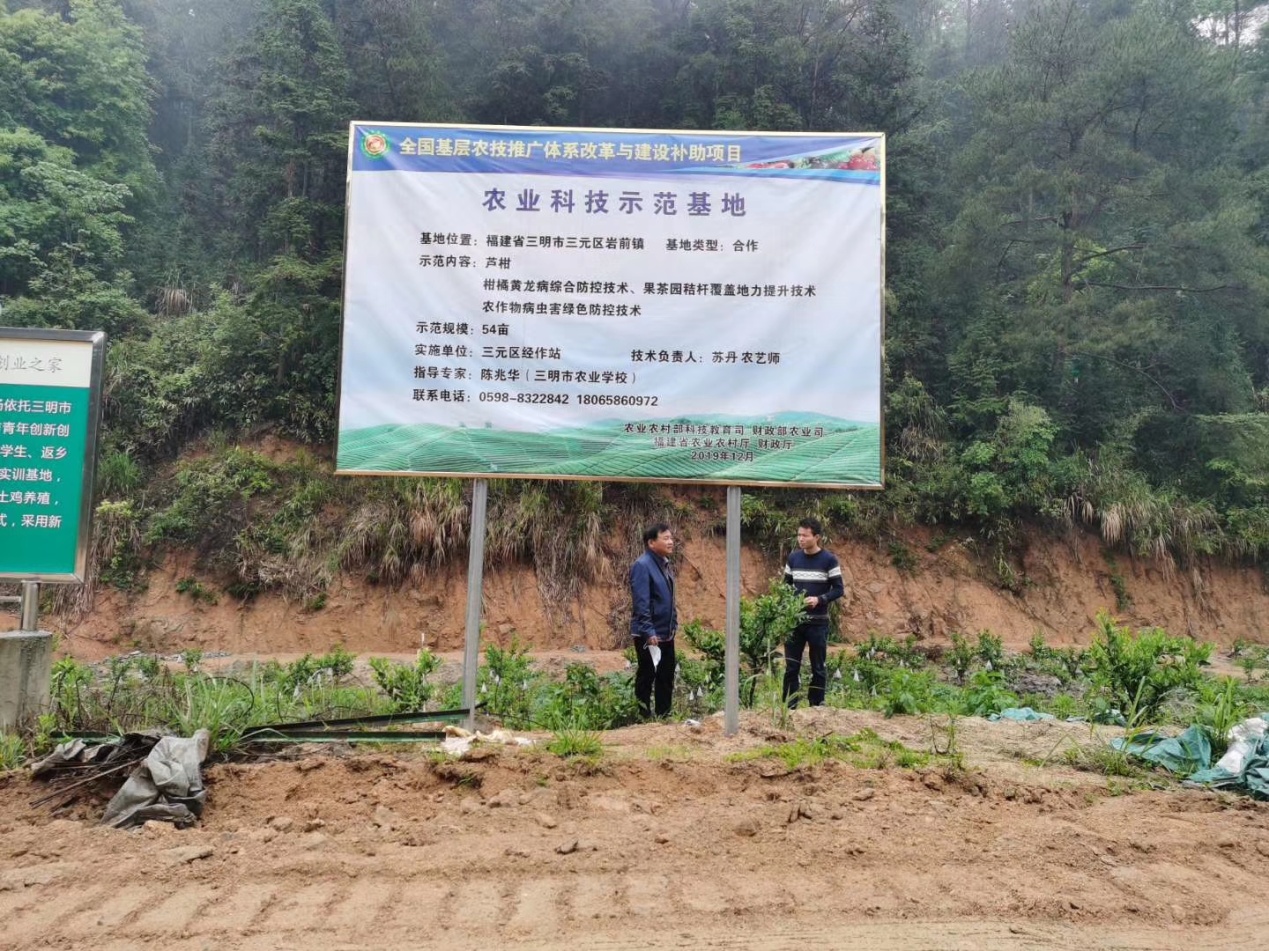 三明市三元区壹号家庭农场,位于岩前村距万寿岩景区1公里处,由福建省农村青年致富带头人吴阁墩创立。LEJING.COM(中国)有限公司于2019年与该农场达成合作协议,指派高级讲师陈兆华负责牵头,组织学校相关教师,为农场的示范基地建设、柑橘栽培、农作物病虫害防治等提供技术咨询、指导服务。学校教师此次到农场,主要对永春芦柑的栽培管理及病虫害防治问题进行现场指导,还就农场的下一步规划建设,与吴阁墩交流了想法和建议。