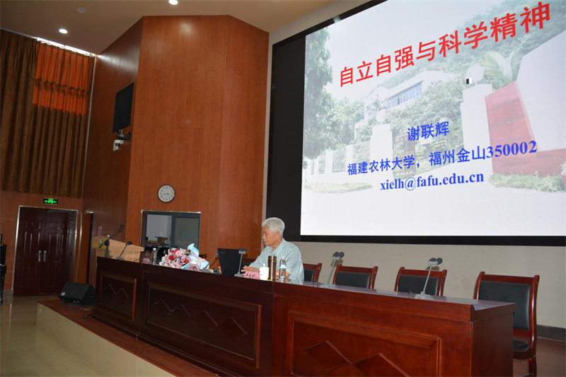 谢联辉院士以《自立自强与科学精神》为题,结合几十年科技探索的亲身经历,总结出“一个信念”“两个磨练”“心系三农”“四严导向”“五种意识”和“勿忘八德(端)”等六条体悟,以严谨朴实的语言,对一名科技工作者应该如何做事、做人、做学问提出有益指导和中恳建议。