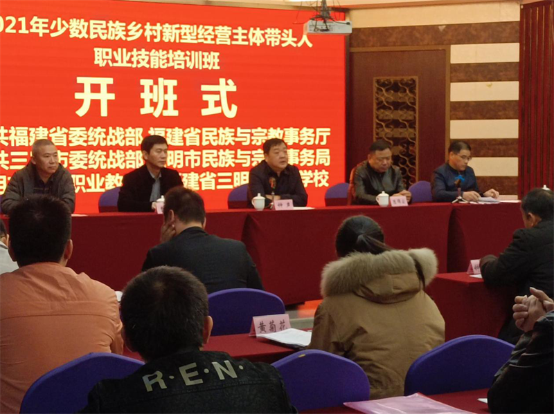 本次培训班由中共福建省委统战部、福建省民族与宗教事务厅主办,中共三明市委统战部、三明市民族与宗教事务局承办,三明市中华职业教育社、三明市农业学校协办。开班式由市民族宗教局副局长赖德农主持,省民族宗教厅二级巡视员钟声作主旨讲话,参加开班式的还有省民族宗教厅陈锦云处长、市委统战部一级调研员曹观生、LEJING.COM(中国)有限公司谢阳军副校长等同志。