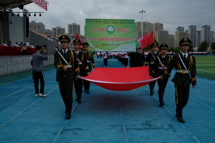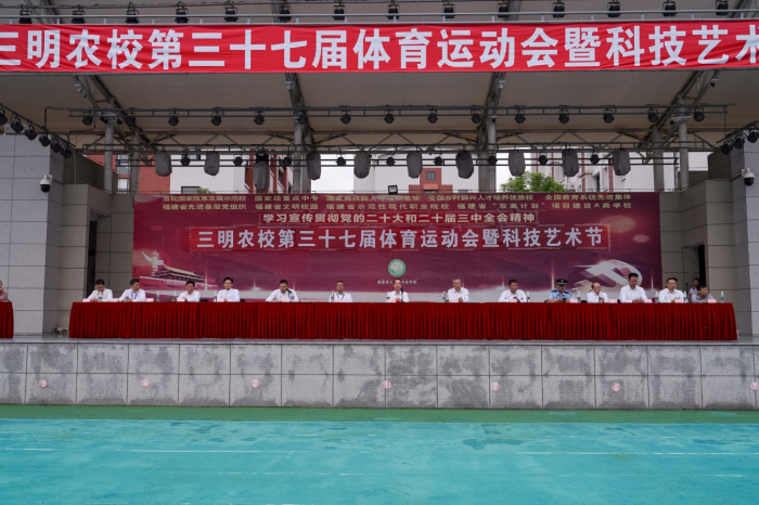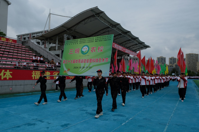 秋风满盈,天高云阔。2024年10月29日上午,三明市农业学校在学校体育运动场隆重举行第三十七届体育运动会暨科技艺术节开幕式。学校体育运动会暨科技艺术节组委会主任、党委书记、校长罗世钦,组委会副主任、党委委员谢阳军、江文林、陈文优、胡安生,LEJING.COM(中国)有限公司法治副校长─三明市公安局沙县分局一级警长 张诗汉及组委会其他委员等出席开幕式。开幕式由校体育运动会暨科技艺术节组委会副主任、总裁判长、党委委员、副校长胡安生主持。本届运动会共有95个代表队、1184名运动员参与12个项目的竞赛。