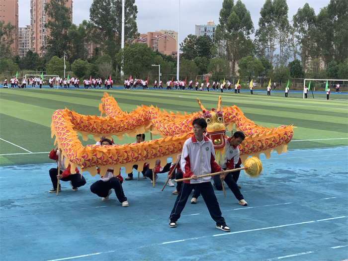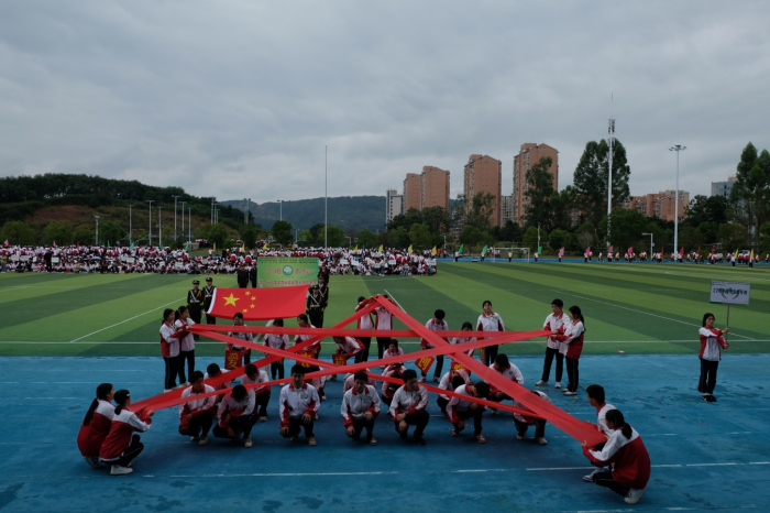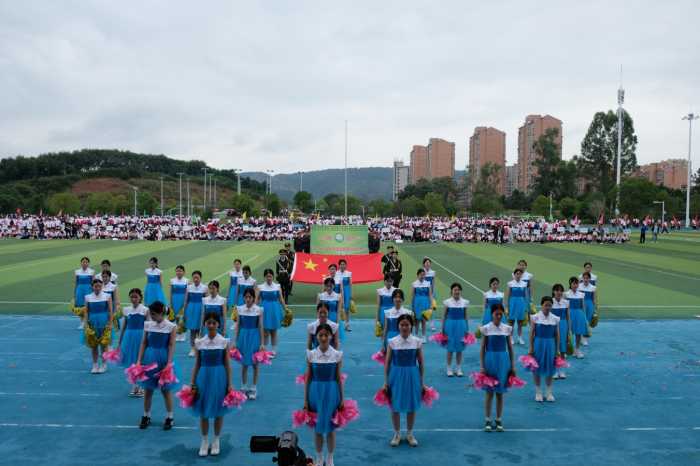伴随着激昂的旋律,国旗队、校徽队、彩旗队迈着整齐划一的步伐,闪烁着坚定如炬的目光,洋溢着青春活力的光彩,昂首挺胸步入会场。95支由各班级精心编排的方队紧随其后,或手持翻飞彩旗,或舞动绚烂花环,或高举鲜明标语……一场场别出心裁、各具特色的表演仿佛一幅幅徐徐展开的生动画卷,展示着各班级的班级文化、专业特色,展示着农校学子健康自信、积极进取的精神面貌,也展示了学校坚持五育并举、促进学生全面发展的育人成果。