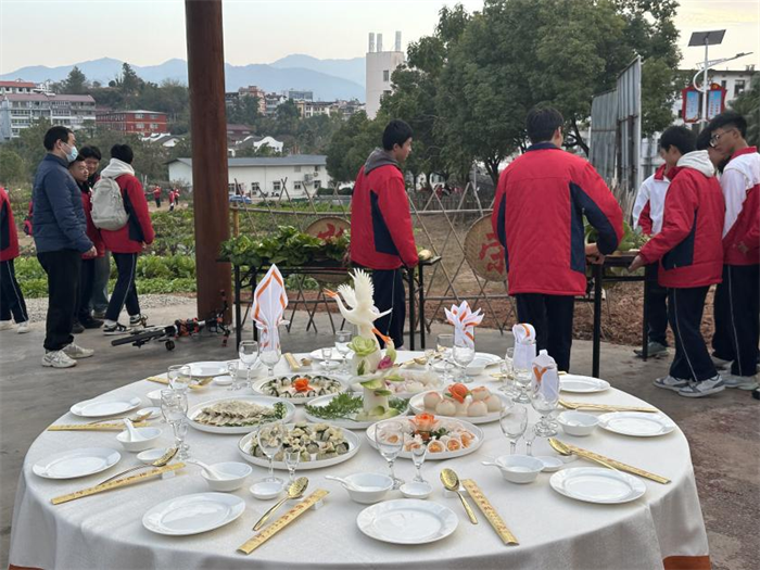 随后,2024年秋季“采摘节”拉开帷幕。在本次采摘节活动中,学生们积极投身实践,亲身体验从田间到餐桌的全过程。他们在班主任的带领下,深入田间地头,采摘了新鲜的萝卜和其他时令蔬菜。在福建省林添雄技能大师工作室领衔人林添雄老师和酒店专业陈晨炜老师的指导下,学生们运用所学烹饪知识,将这些新鲜食材精心烹制成一道道色香味俱佳的佳肴,为全校师生及领导带来了一场视觉与味觉的双重盛宴。